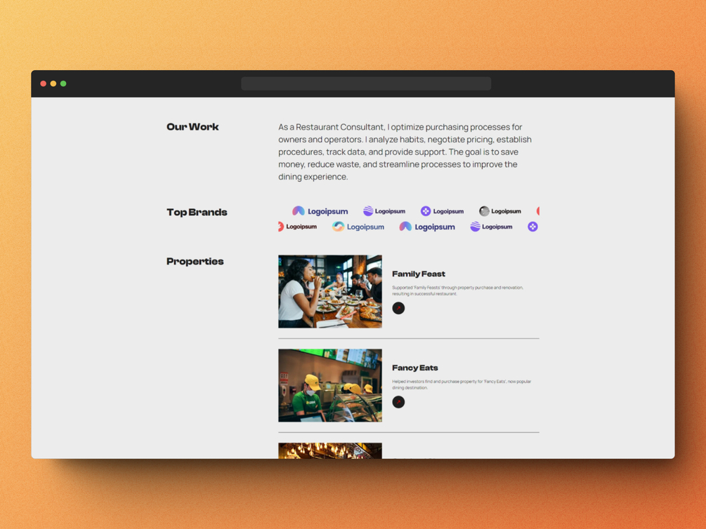 Whether you're an experienced restaurant or bar consultant looking to upgrade your website, or a new entrant to the industry looking for a modern and effective way to showcase your services, the Consultify template is the perfect solution. So why wait? Get started today and start building your dream restaurant or bar business with Consultify!